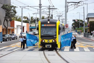 The second phase of the Los Angeles light rail Expo Line, which runs from Culver City to Santa Monica, opened on 20 May 2016. This is the first passenger rail transit service to the far Westside of the Los Angeles Area since Pacific Electric streetcars stopped going to Santa Monica in 1953. The new rail extension also goes through the Westside Pavilion in West Los Angeles and the job-heavy tech and media corridors along Olympic Boulevard. For 34,000 Santa Monica students, the 17th Street/Santa Monica College Station is a convenient short walk or bike ride from Santa Monica College. The first phase of the Expo Line between downtown Los Angeles and Culver City opened in 2012, and heavy construction on the second phase began that same year. Train trips between downtown Santa Monica and downtown Los Angeles on the Expo Line take 46 min. “Metro is in the midst of a region-wide transit revolution,” said Los Angeles County Supervisor and Metro Board Chair Mark Ridley-Thomas. “With two rail lines opening this spring and three others under construction, as well as massive highway modernization projects underway, we are easing congestion and changing commuting patterns in all corners of the county.