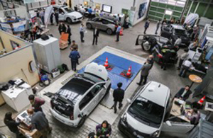 Test System for E-Vehicles (left) and impressions from Testing Symposium at TU