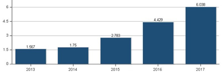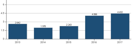 The following two figures show the impact factor for the two journals in the past five years.