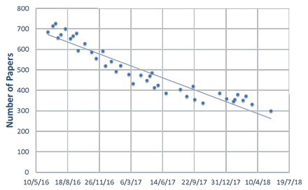 Figure 3. Number of TVT papers in IEEE Xplore Early Access during October 2016 – July 2018