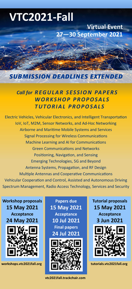 Regular papers, Special Session papers and tutorial proposals are due 10 May 2021.