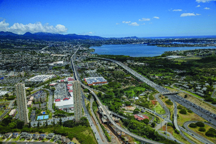 An aerial view of Honolulu Rail Transit’s exclusive right of way.