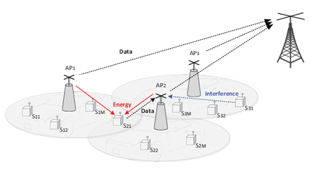 The considered multi-VAN system consists of a remote master access point (MAP), multiple on-vehicle hybrid access points (HAPs) and sensors. Unlike previous works, we consider that the sensors can recycle the radiated radio frequency energy from all the HAPs when HAPs communicate with MAP, so the dedicated signals for energy harvesting (EH) are unnecessary.