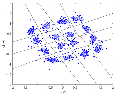 Then, we determine the optimal decision boundaries by learning a linear classification model for each bit decision region from I and Q values of received QAM signals as two-dimensional support vectors.