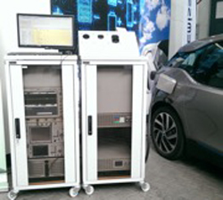 Test System for E-Vehicles (left) and impressions from Testing Symposium at TU