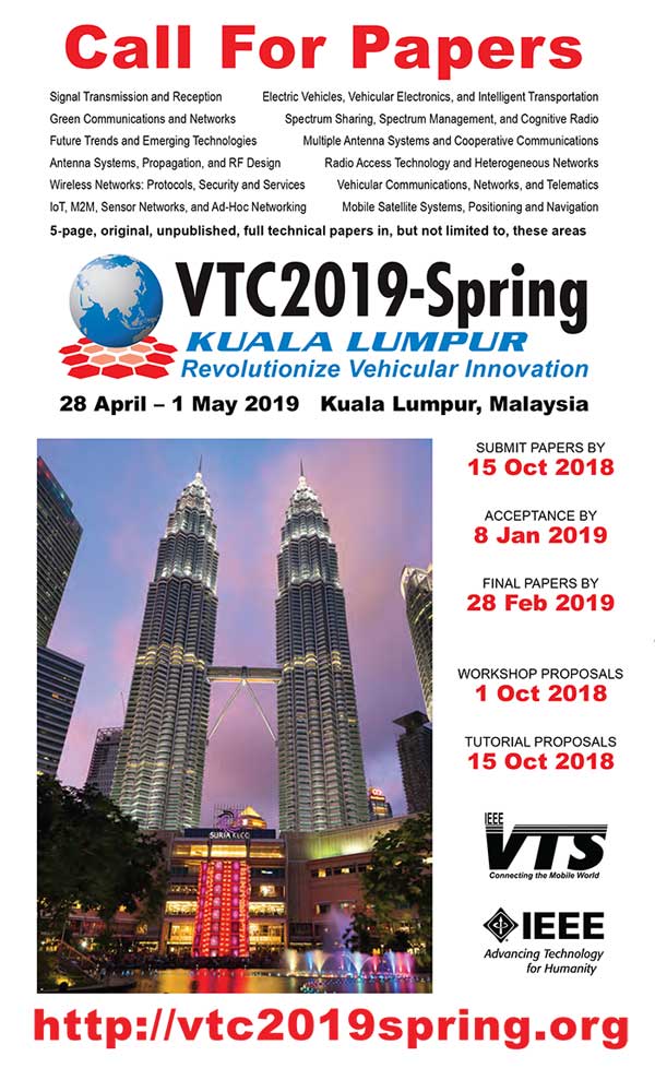 Welcome to the October issue of VTS Mobile World in 2018 – your IEEE Vehicular Technology Society newsletter. We have an exciting set of articles in this issue for you, including photos from the VTS and VTC2018-Fall awards ceremony that took place August 2018 in Chicago. The Society President and Vice President—Conferences each provide information on several aspects of VTS services. I look forward to hearing from you about how we can better serve all VTS members. I can be reached at a.jamalipour@ieee.org. Read More... |